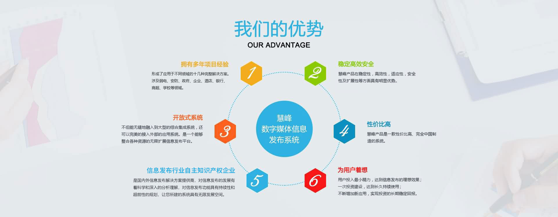公司本著互惠互利,誠實(shí)信用的原則,真誠面對用戶,并愿與社會各界展開廣泛的合作。 公司現(xiàn)已是國內(nèi)的數(shù)字媒體信息發(fā)布系統(tǒng)解決方案提供商,產(chǎn)品涉及大中型企業(yè)、商業(yè)地產(chǎn)、各級黨政機(jī)關(guān)、軍隊(duì)、司法、信息通信、金融、醫(yī)療、教育、能源交通、公用事業(yè)領(lǐng)域。